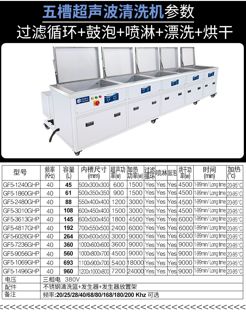 - 五槽工藝:超聲波清洗+過濾>漂洗>烘干其它等工藝可定制;