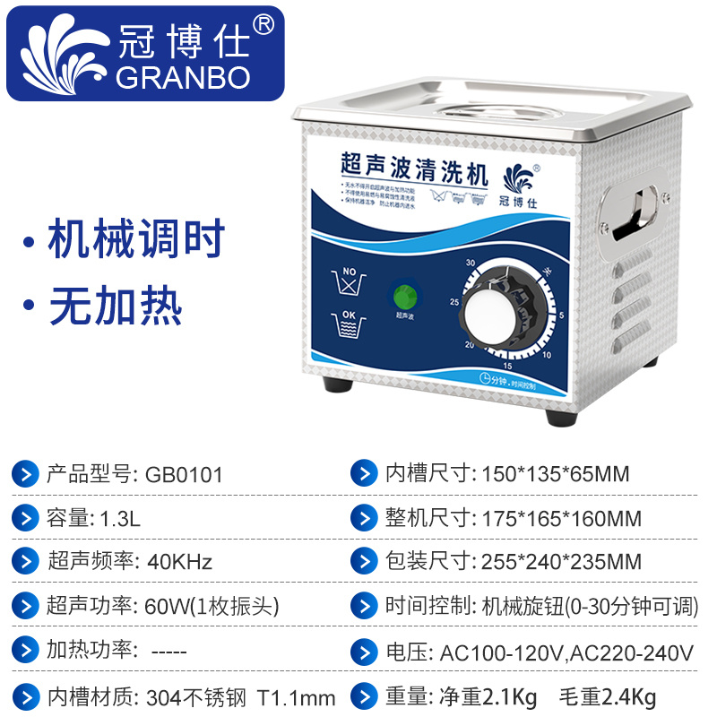 冠博仕GB0101超聲波清洗機(jī)|1.3L/60W|機(jī)械定時(shí)無(wú)加熱