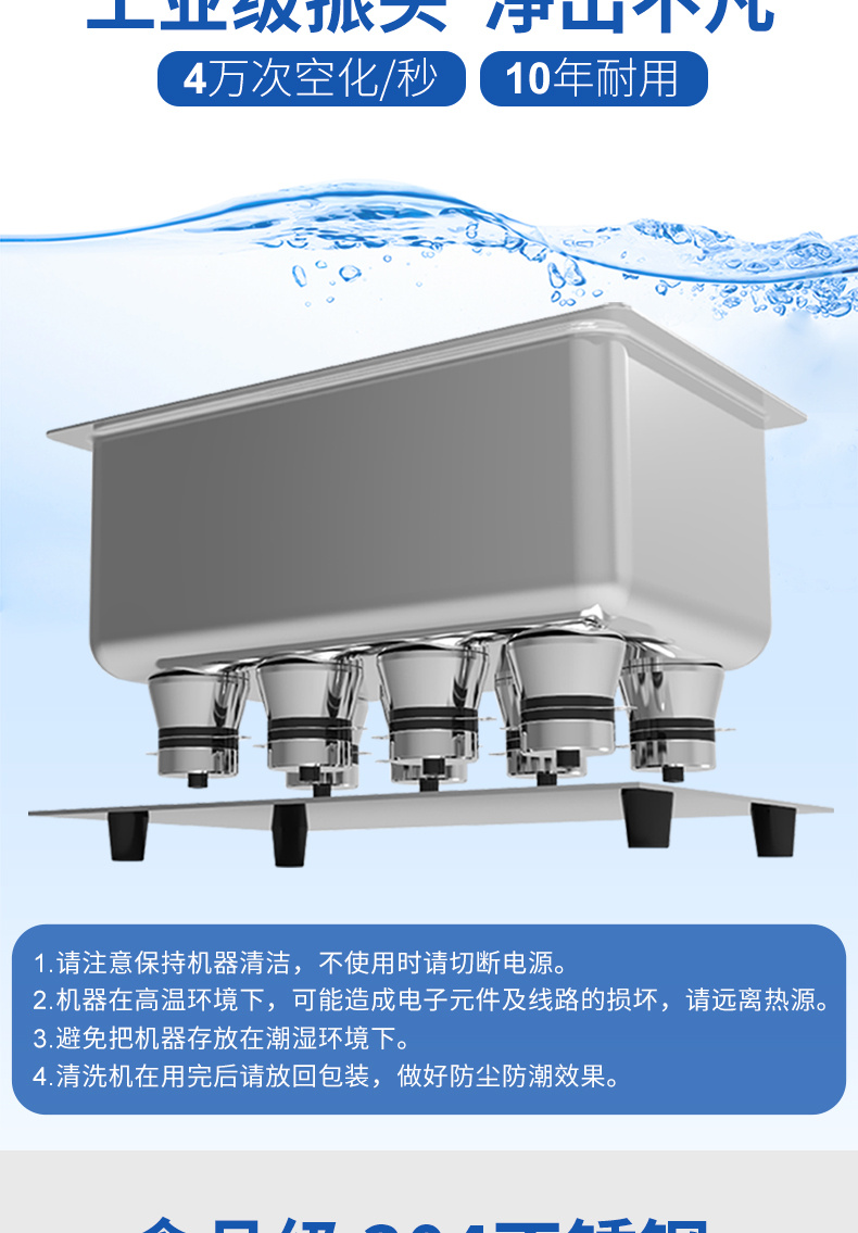 - 工業(yè)換能器: 采用工業(yè)震頭40KHz,力度強(qiáng)勁效果佳;