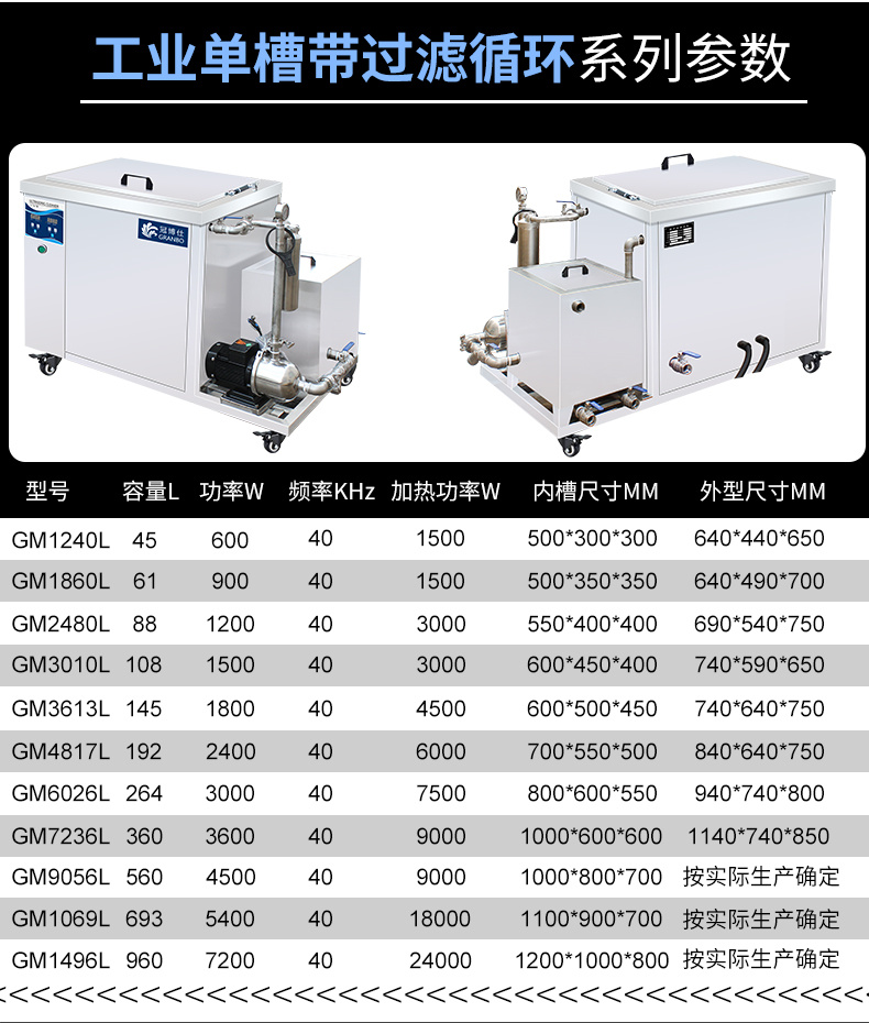 冠博仕超聲波清洗機 工業單槽機 側置過濾循環系統 45L-960L可選 支持定制