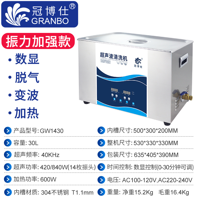 冠博仕GW1430超聲波清洗機(jī)|30L/840W|變波脫氣帶加熱