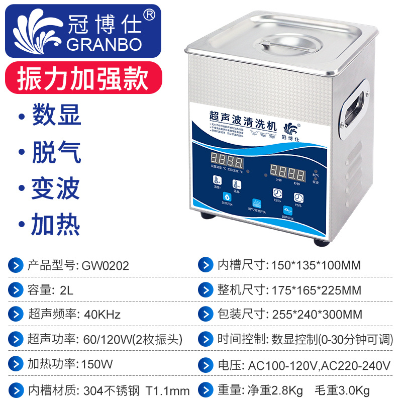 冠博仕GW0202超聲波清洗機(jī)|2L/120W|變波脫氣帶加熱