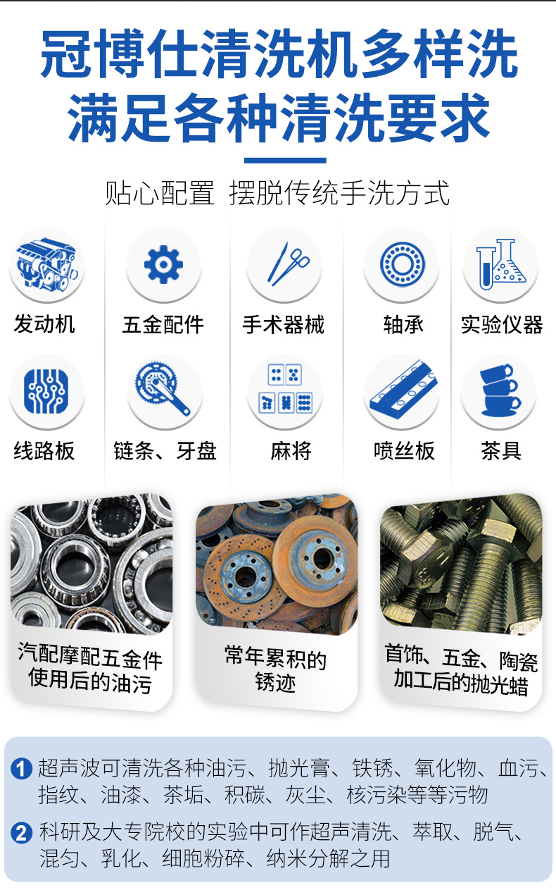 - 超聲波清洗機(jī)與清洗劑一起使用,清洗效果更佳!