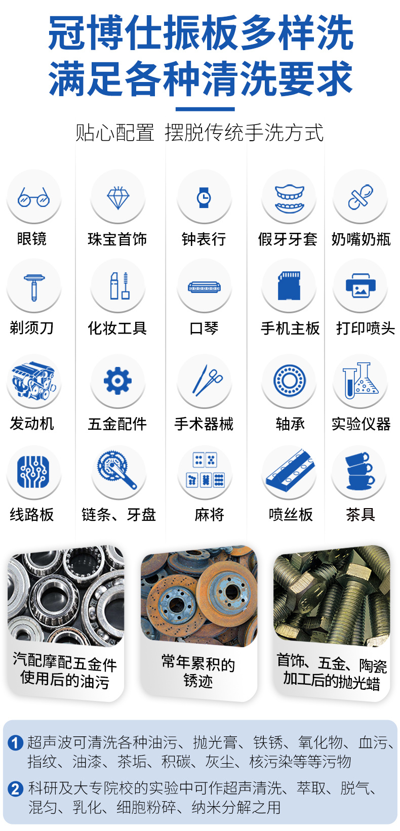 - 超聲波清洗機與清洗劑一起使用,清洗效果更佳!